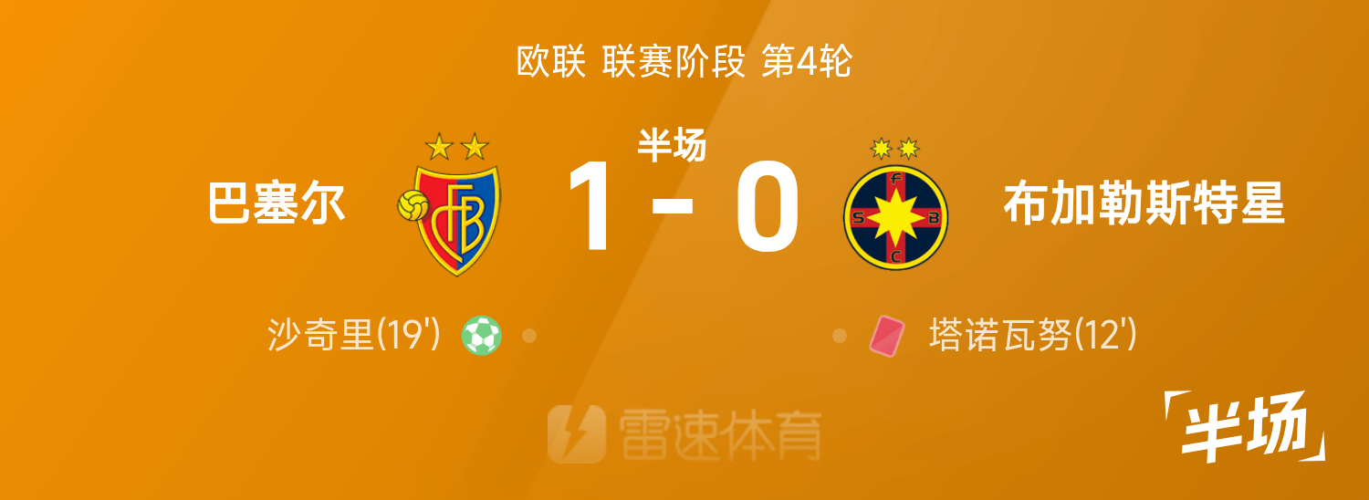 6686 กีฬา 7 พฤศจิกายน ในรอบที่สี่ของยูโรป้าลีก 25/26 บาเซิลเผชิญหน้ากับสเตอัว บูคาเรสต์ หลังพักครึ่งคะแนนระหว่างทั้งสองฝ่ายคือบาเซิล 1-0 สเตอัว บูคาเรสต์ โดยชาคิรีทำประตู และทาโนวานูโดนใบแดง