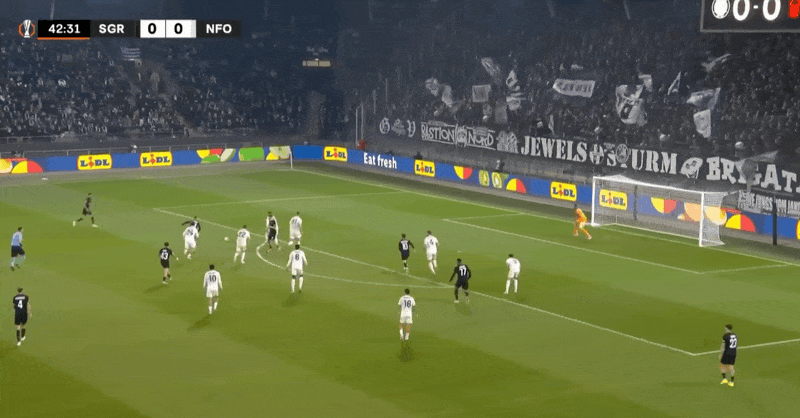 พักครึ่งยูโรปาลีก ไวท์พลาดแต้ม มาโลนเสียประตู กราซ สตอร์ม 0-0 น็อตติ้งแฮม ฟอเรสต์
