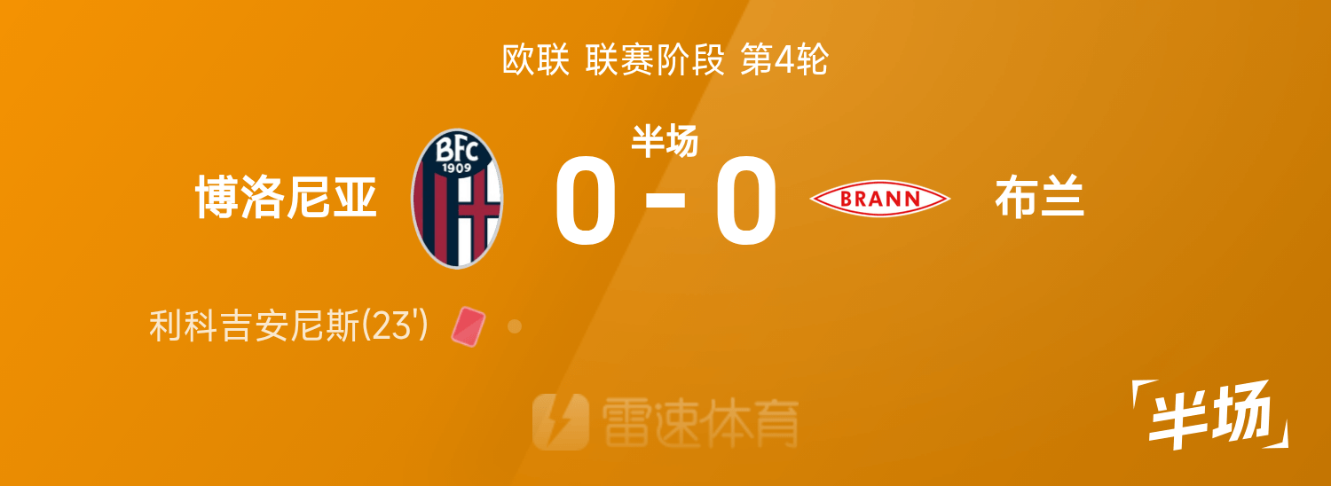พักครึ่งยูโรปาลีก: ริโก จานนิสโดนใบแดงโดยไม่คาดคิด โบโลญญ่าสิบคนเสมอ 0-0 แบรนชั่วคราว