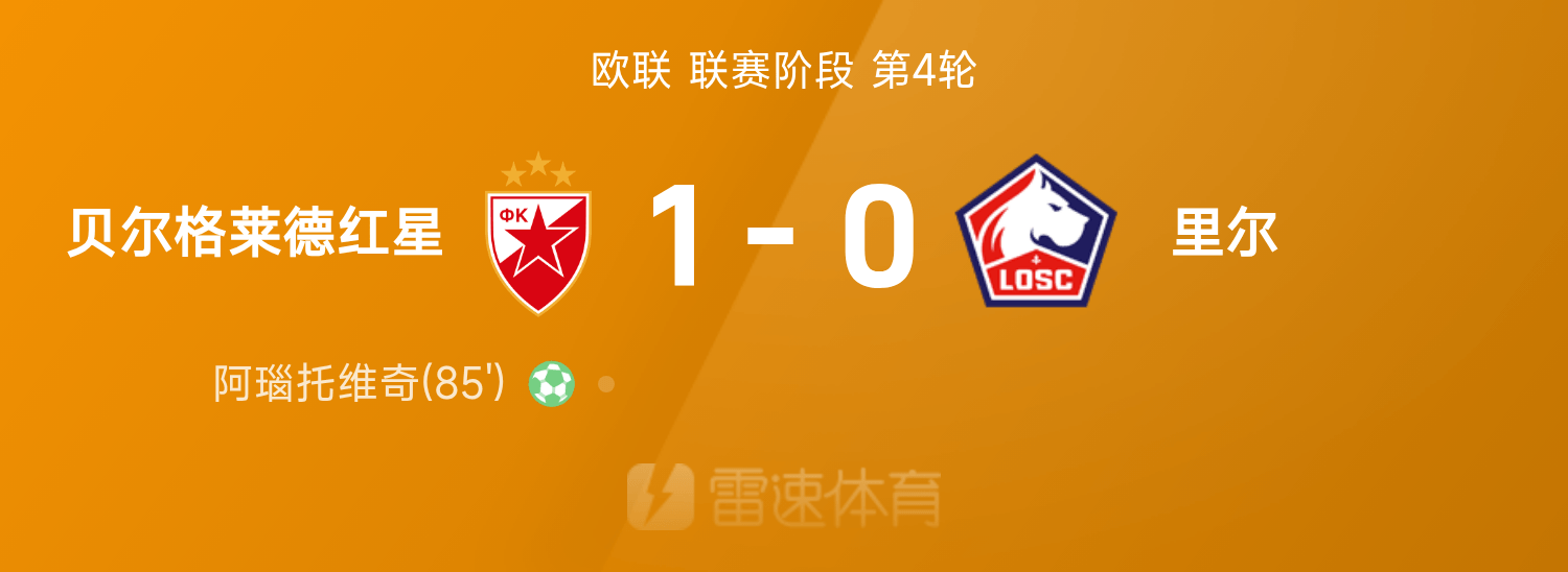 รายงานยูโรป้า ลีก อาร์เนาโตวิชยิงจุดโทษ เร้ดสตาร์ เบลเกรด เอาชนะลีลล์ 1-0