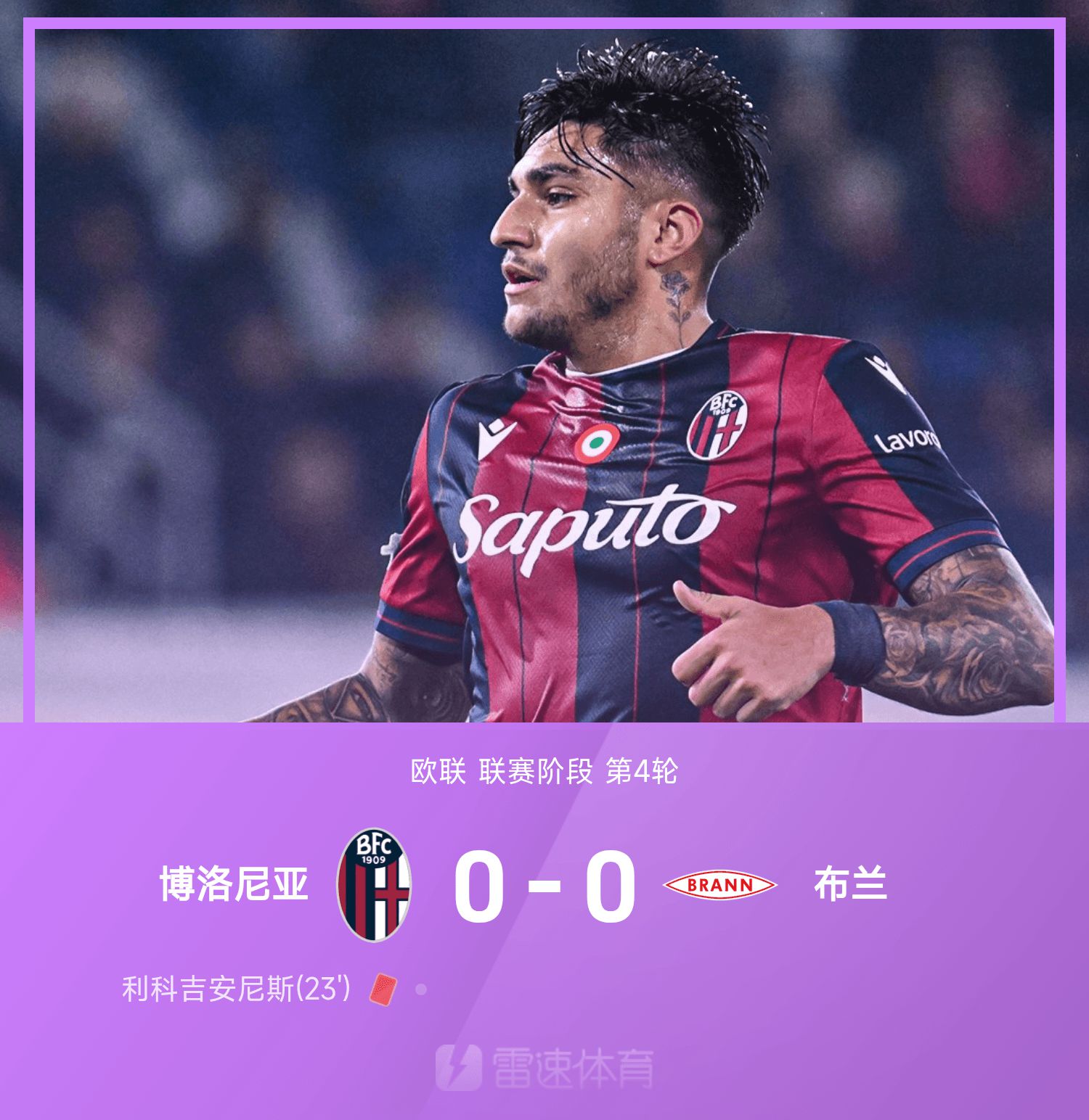 6686 ข่าวกีฬาเมื่อวันที่ 7 พฤศจิกายน ในรอบที่สี่ของยูโรปาลีก 25/26 โบโลญญาเล่นในบ้านกับบรังก้า ลิโก ยานนิส โดนใบแดงในครึ่งแรกของเกม รวมเกมทั้งสองทีมตีกรอบประตูเพียง 3 ครั้งเท่านั้น และเกมก็น่าเบื่อมากเช่นกัน สุดท้ายโบโลญญ่า 10 คนเสมอกับบรานเนน 0-0 ในบ้าน