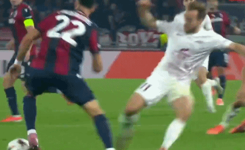 42' คือ 12 หลาหรือเปล่า? นักเตะโบโลญญ่าถูกดึงลงมาในโซนสามวินาที แต่กรรมการเป่านกหวีดให้พุ่ง
