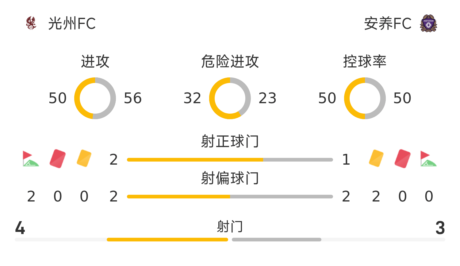 กวางจู เอฟซี รายชื่อตัวจริง: 1-คิม เกิง-มิน, 94-ชิม ซัง-มิน, 5-เบียน จุน-ซู, 2-จ้าว เฉิง-ควอน, 20-จิน ซี-วู, 10-ชุย ชิงลู, 18-ปาร์ค อิน-ฮยอก, 8-ลี กังซวน, 16-เจิ้ง จี้ซุน, 17-Reis, 40-เซิน ฉางหวู่