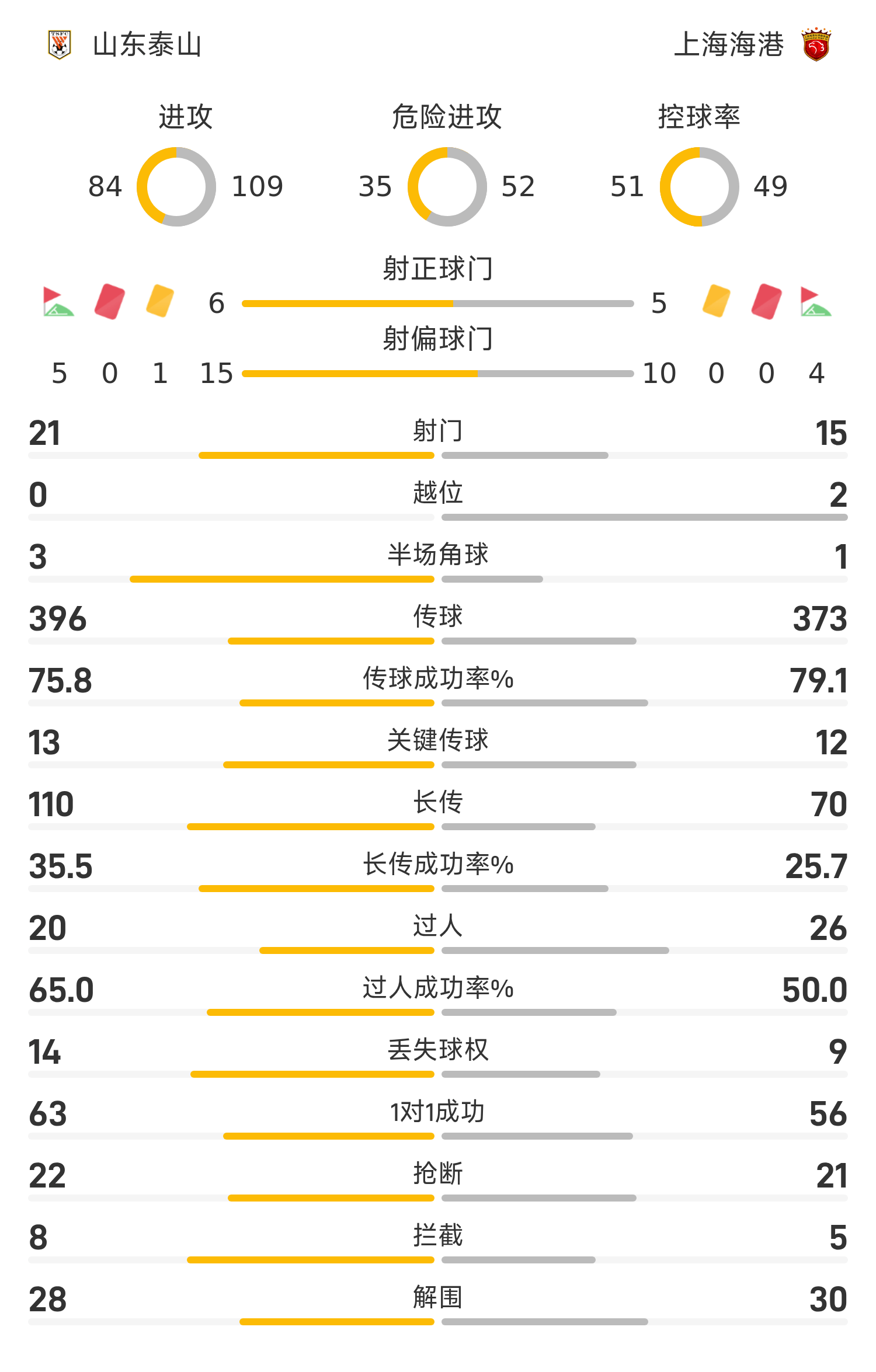 ซานตง ไท่ซาน รายชื่อตัวจริง: 14-หวัง ต้าเล่, 5-เจิ้ง เจิ้ง (46'22-หลี่ หยวนยี่), 33-ไมโคร วิงส์, 11-หลิว หยาง (84'17-อู๋ ซิงหาน), 55-เผิง เซียว, 35-หวง เจิ้งหยู, 8-มาดรูกา, 10-Ka Zaishvili, 9-Klesan, 19-Zeka, 38-Li Xiaoheng (46'23-Xie Weneng)