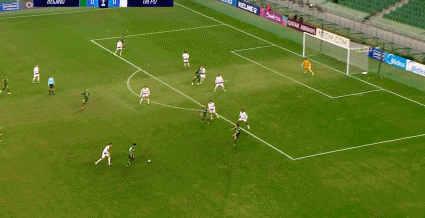 77' เซร์จินโญ่ได้บอลหน้าโซนสามวินาที ยิงจากด้านนอกใส่กองหลังสองคน และบอลพลาดเสา