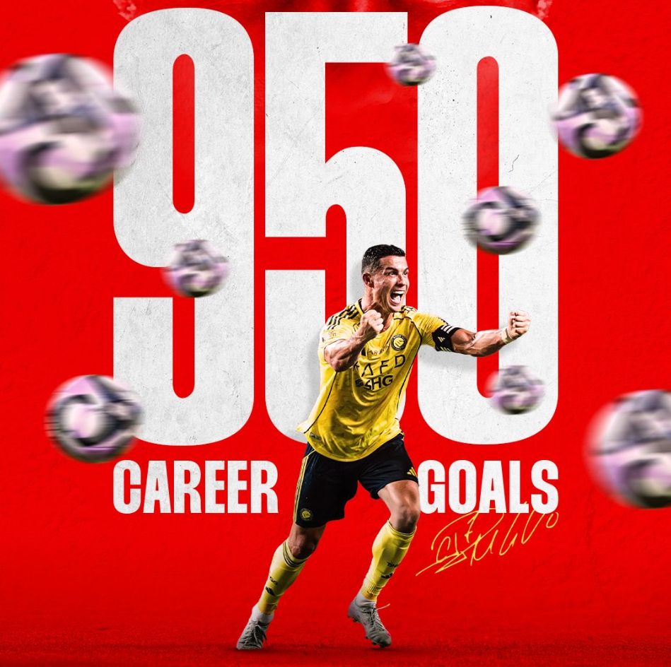 คริสเตียโน่ โรนัลโด้ ยิงประตูที่ 950 ในอาชีพของเขา แต่ยังไม่ถึง 50 ประตูจากเป้าหมาย 1,000 ประตู