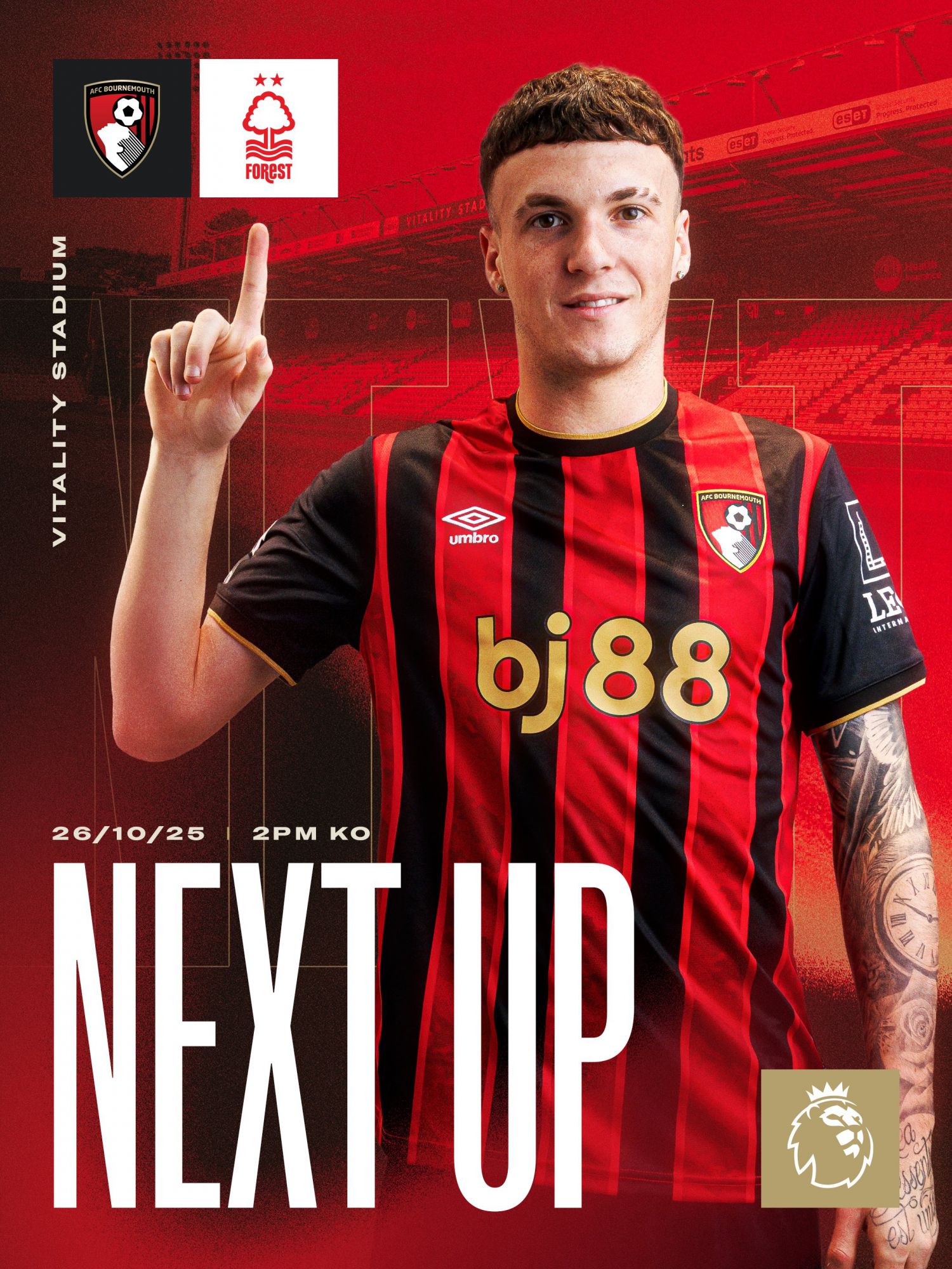 เวลา 22.00 น. เย็นวันที่ 26 ตุลาคม ตามเวลาปักกิ่ง ในรอบที่ 9 ของพรีเมียร์ลีกฤดูกาล 2025/26 "เรดเชอร์รี่" บอร์นมัธจะพบกับน็อตติ้งแฮม ฟอเรสต์ที่ไวทาลิตี้ สเตเดี้ยมของทีมเจ้าบ้าน