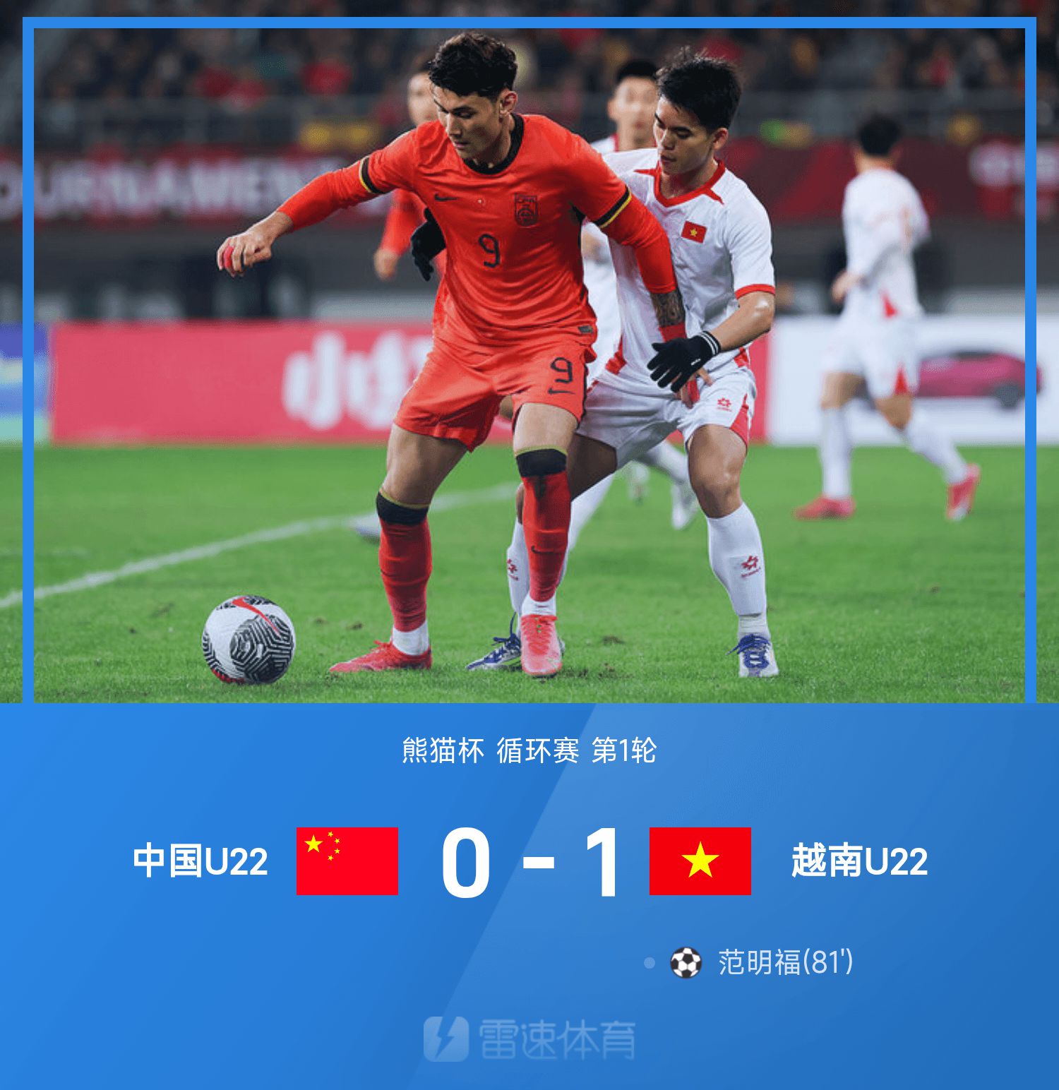 6686 Sports รายงานเมื่อวันที่ 12 พฤศจิกายนว่าในรอบแรกของการแข่งขัน Panda Cup รอบที่ 25 ทีมชาติ U22 แพ้เวียดนาม U22 0-1 และออกสตาร์ทได้ไม่ดี ในครึ่งแรกของเกม ไป่เหอ ลามู พลาดประตูเดียว นาทีที่ 81 กองหลังทีมจีนทำพลาดติดต่อกันในการแย่งบอลจากหน้าประตู และ ฟามมิงห์ฟุก ก็วอลเลย์ช่วยให้ทีมเวียดนามชนะ