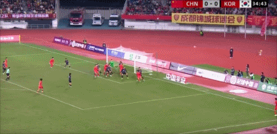 21’ ฟรีคิกของหวัง ซือชิน เข้าสู่โซน 3 วินาที และเกาหลีใต้เกือบจะได้เข้าประตูตัวเองเมื่อเคลียร์บอลจากบนสุดของบอล