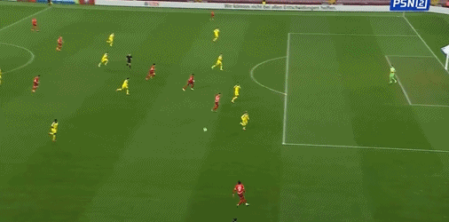 43' ไนเกรนซุ่มโจมตีประตูในโซนสามวินาที แต่ได้บอลเข้าตาข่ายข้าง