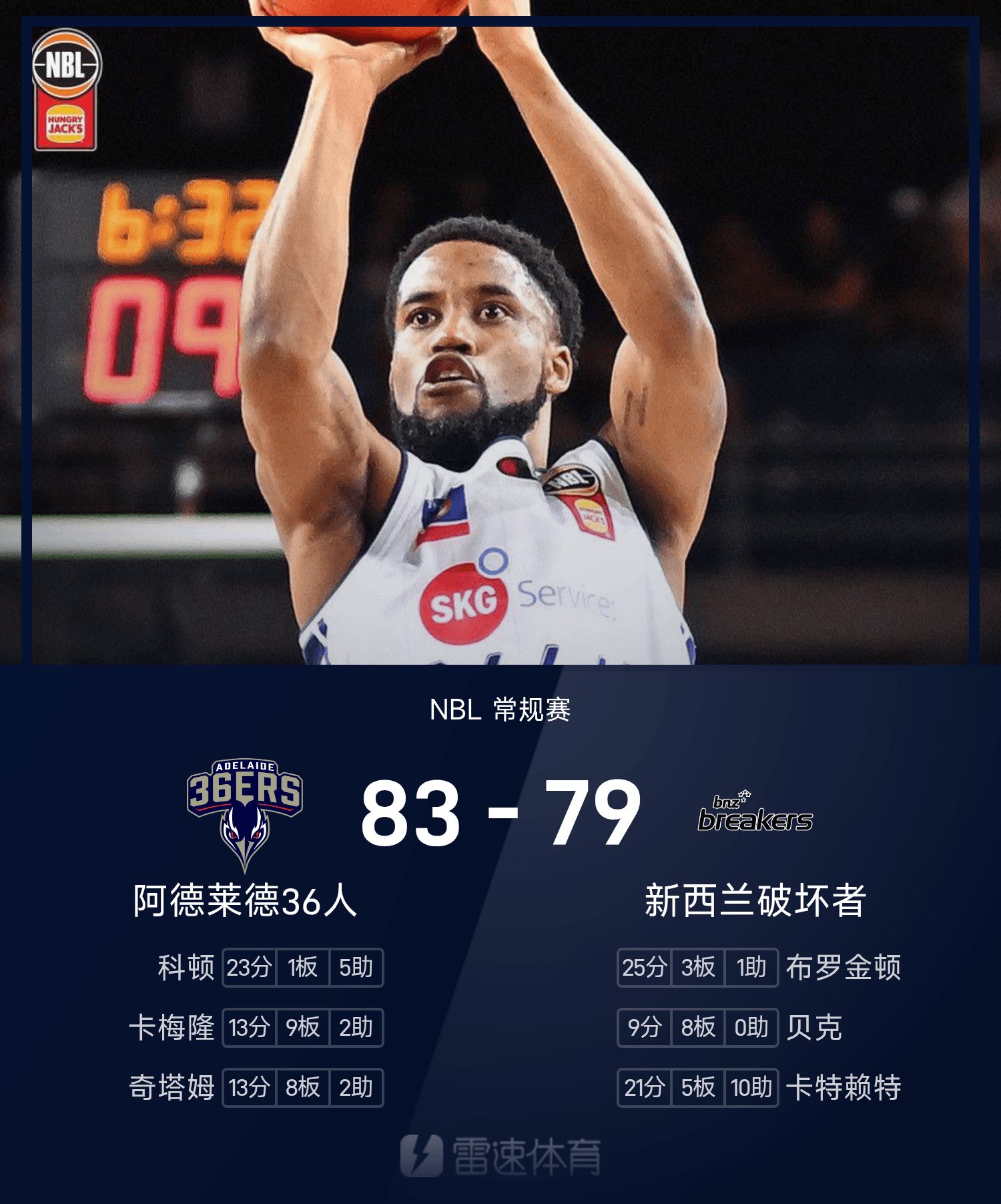 6686 กีฬา ข่าว 06 พฤศจิกายน ในฤดูกาลปกติ 25/26 ของ NBL เรือพิฆาตนิวซีแลนด์เผชิญหน้ากับแอดิเลด 36ers จบเกม New Zealand Destroyers แพ้ Adelaide 36ers 79-83 คอตตอนทำคะแนนได้ 23 แต้ม 1 รีบาวด์และ 5 แอสซิสต์เพื่อนำทีมไปสู่ชัยชนะ ในขณะที่บร็อคคิงตันทำคะแนนสูงสุดในเกม 25 แต้ม 3 รีบาวน์และ 1 แอสซิสต์