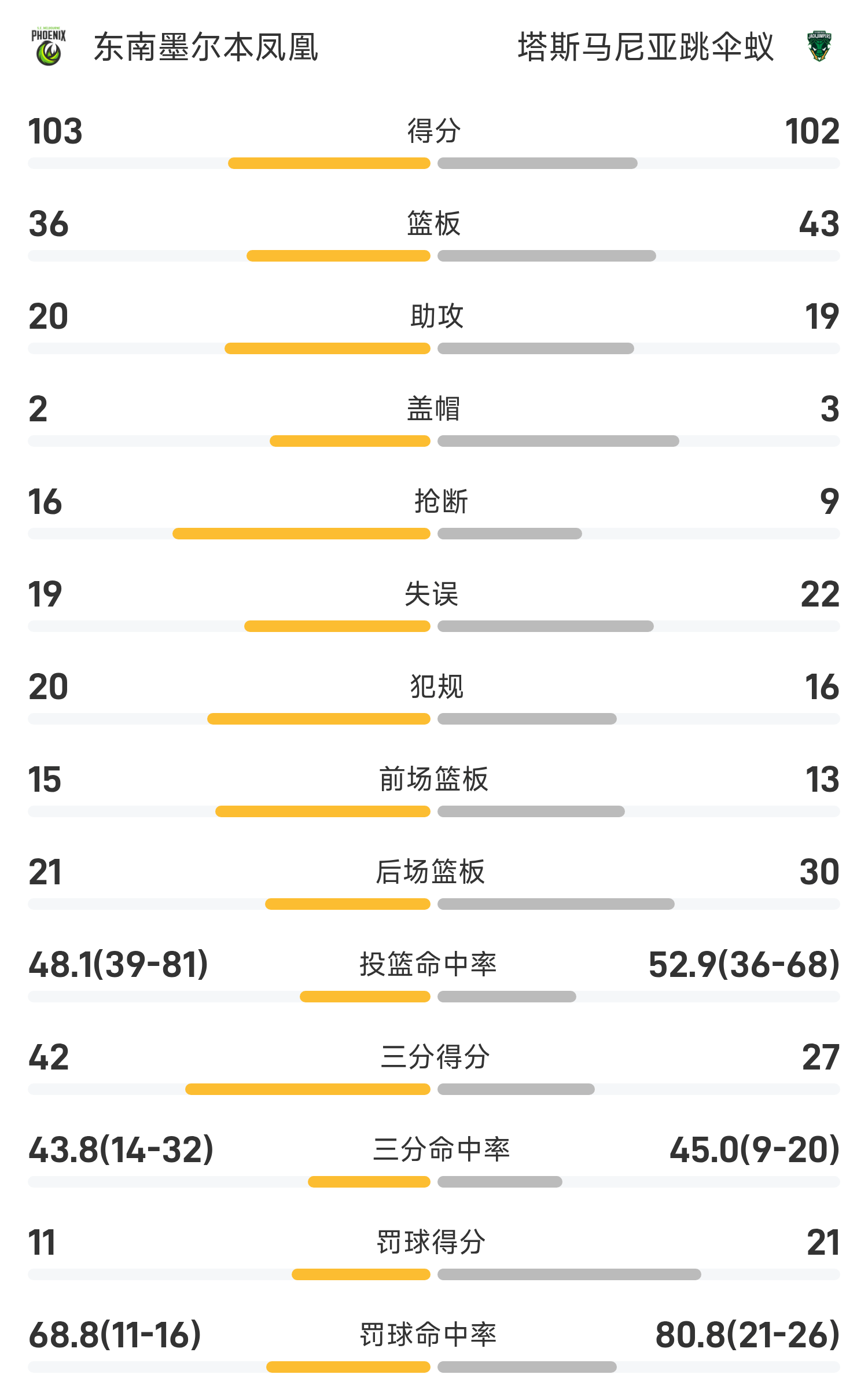 รายงานศึก NBL โซบี 28 แต้ม เมลเบิร์น ฟีนิกซ์ ตะวันออกเฉียงใต้ เอาชนะ แทสเมเนียน ดิ่งพสุธา มดส์ 103-102