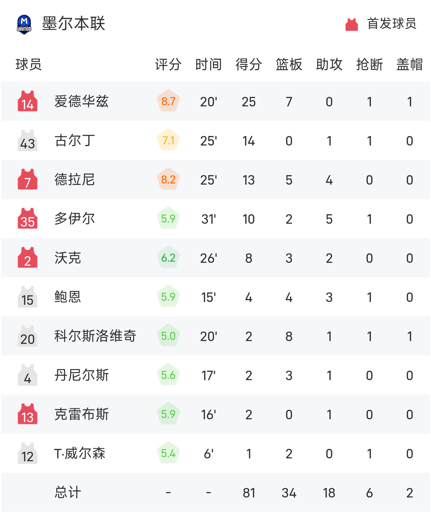 เอ็ดเวิร์ดทำคะแนนสูงสุดในเกม 25 แต้มและ 7 รีบาวน์ นำเมลเบิร์นยูไนเต็ดคว้าชัยชนะ