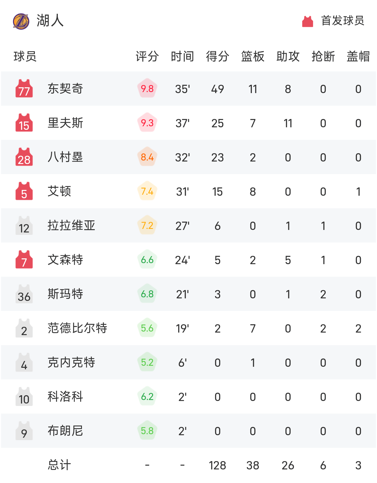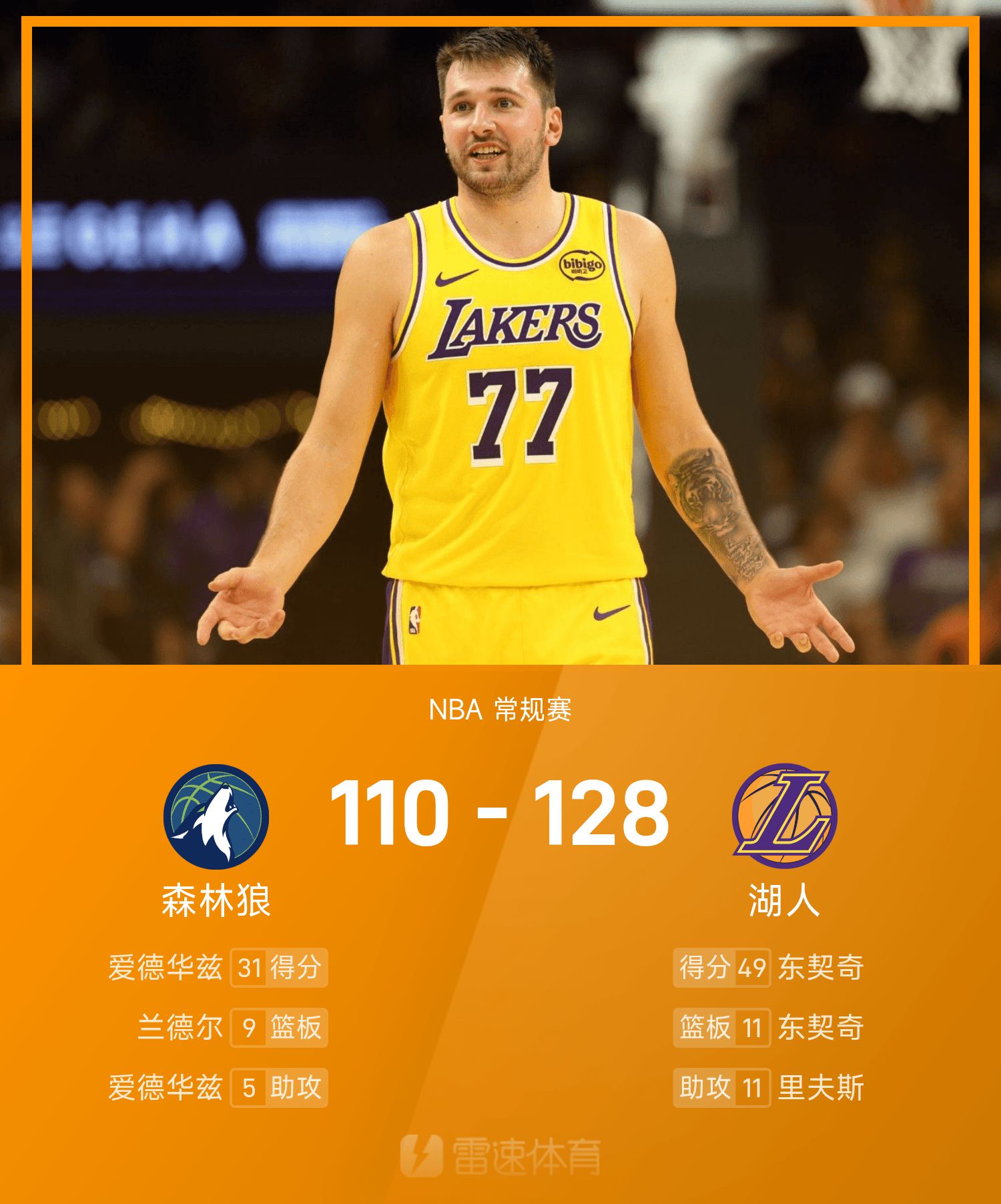 6686 กีฬา 25 ตุลาคม ในฤดูกาลปกติของ NBA 25/26 ทีม Lakers เล่นกับ Timberwolves จบเกม เลเกอร์ส เอาชนะ ทิมเบอร์วูล์ฟส์ 128-110 ดอนซิชทำคะแนนสูงสุดในเกม 49 แต้ม 11 รีบาวน์และ 8 แอสซิสต์ นำทีมเลเกอร์สคว้าชัยชนะ