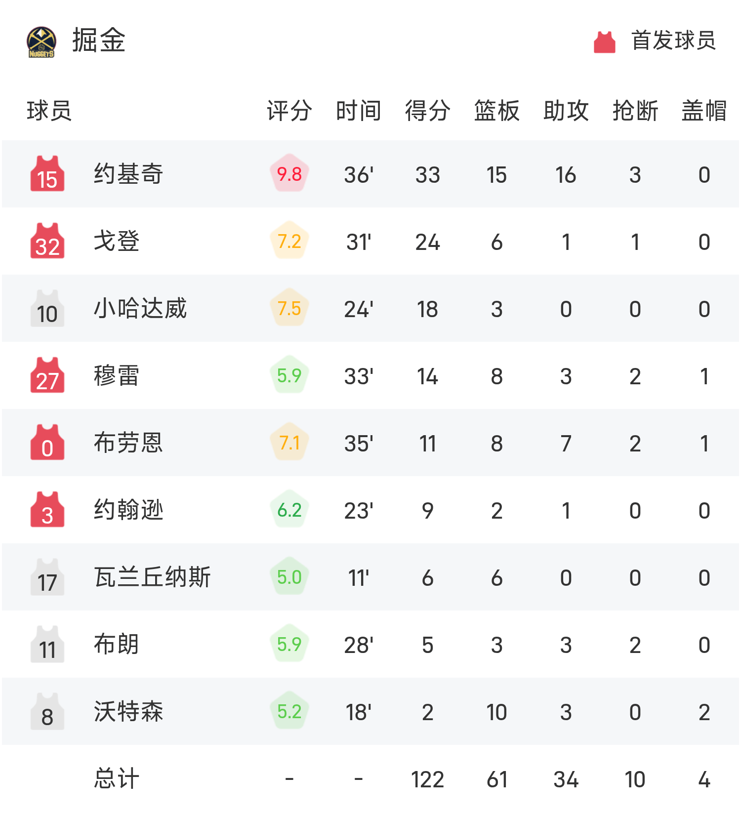 โยคิชทำคะแนนสูงสุดในเกม 33 แต้ม 15 รีบาวน์และ 16 แอสซิสต์ นำทีมนักเก็ตไปสู่ชัยชนะ