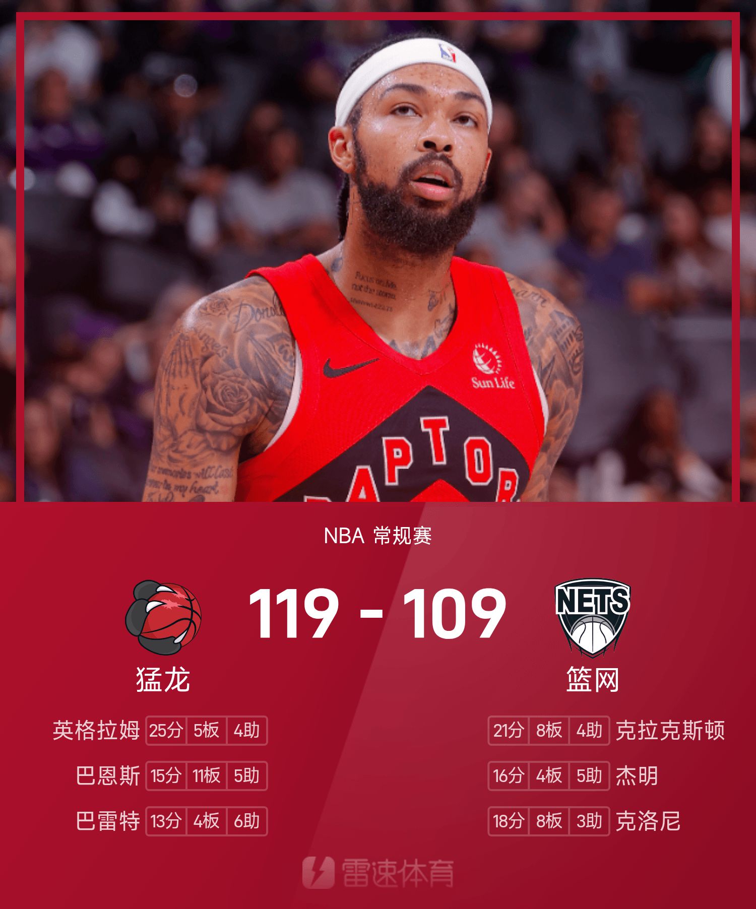 ในตอนท้ายของเกม Nets แพ้ Raptors 109-119