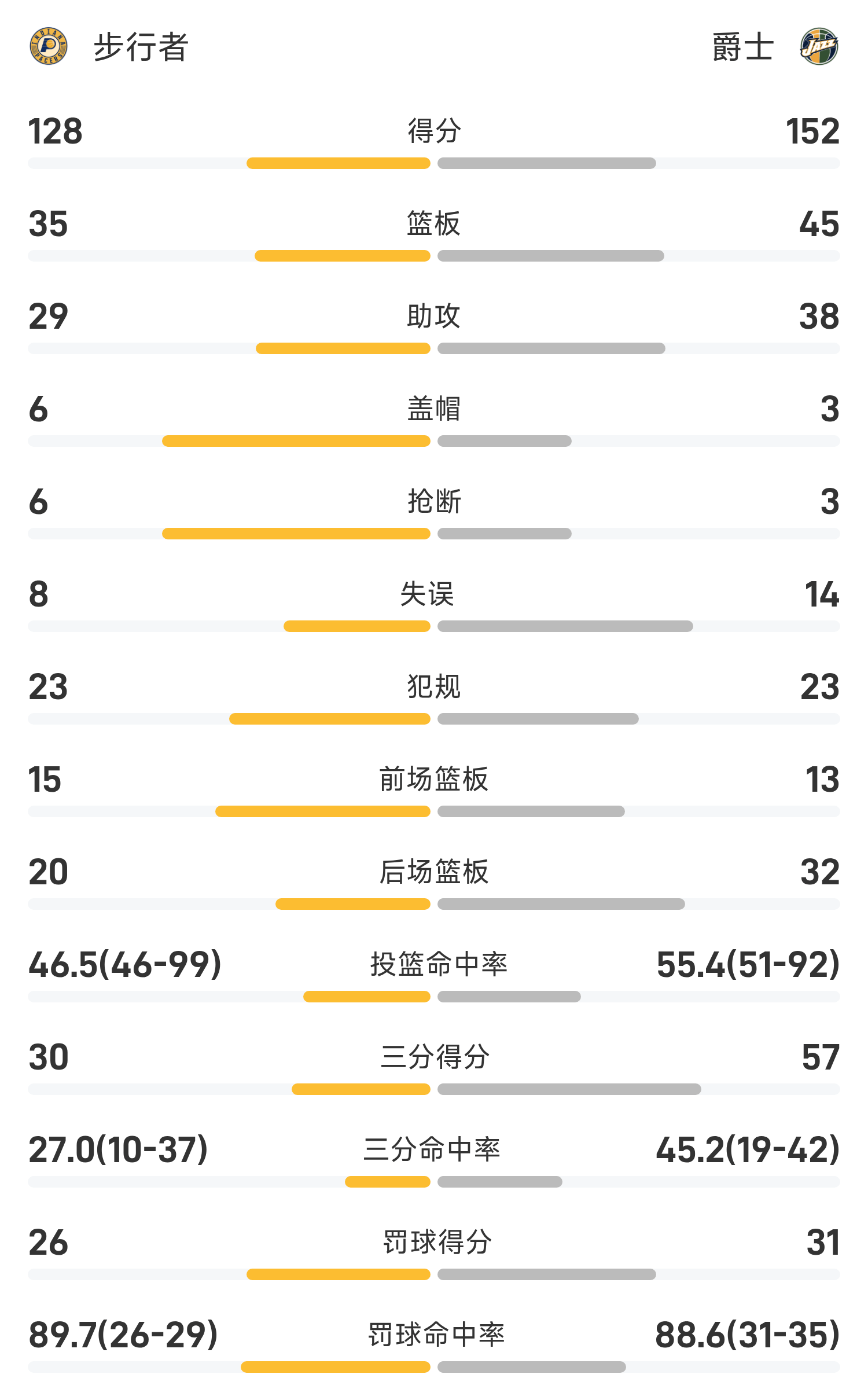 ในตอนท้ายของเกม แจ๊ส เอาชนะ เพเซอร์ส 152-128