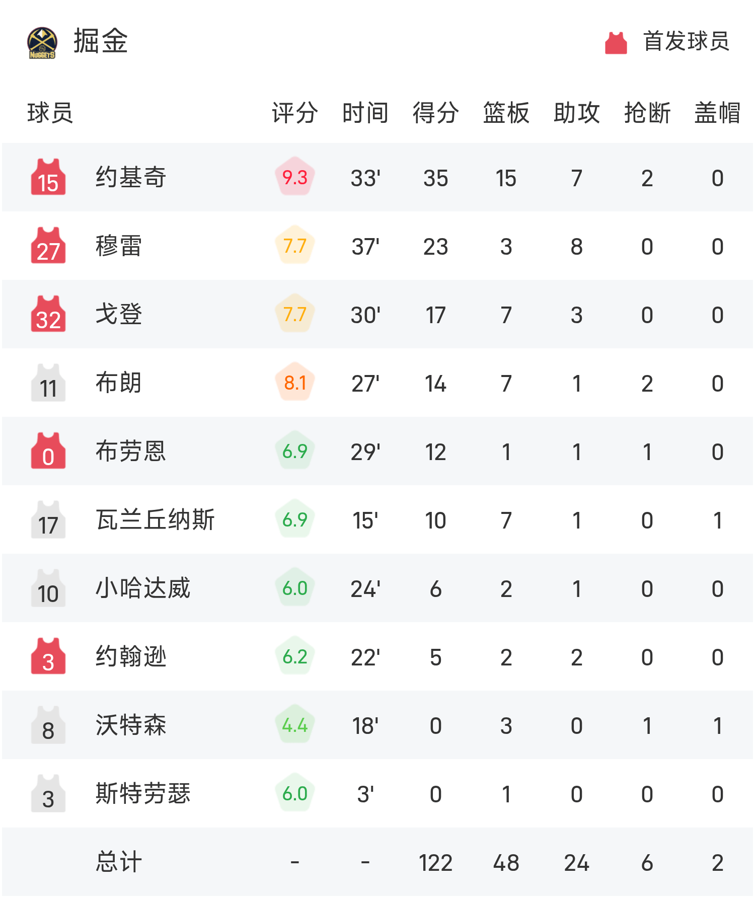 โยคิชทำคะแนนสูงสุดในเกม 35 แต้ม 15 รีบาวน์และ 7 แอสซิสต์ นำทีมนักเก็ตไปสู่ชัยชนะ